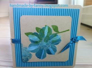 Hier sind die Blümchen mit weisser Stazon Tinte gestempelt, wenn dannn mit Aquapainter Farbe darauf gebracht wird, kommen die Weissen linien wieder hervor! das funktioniert auch mit Embossingpulver und es sieht WOW aus!
